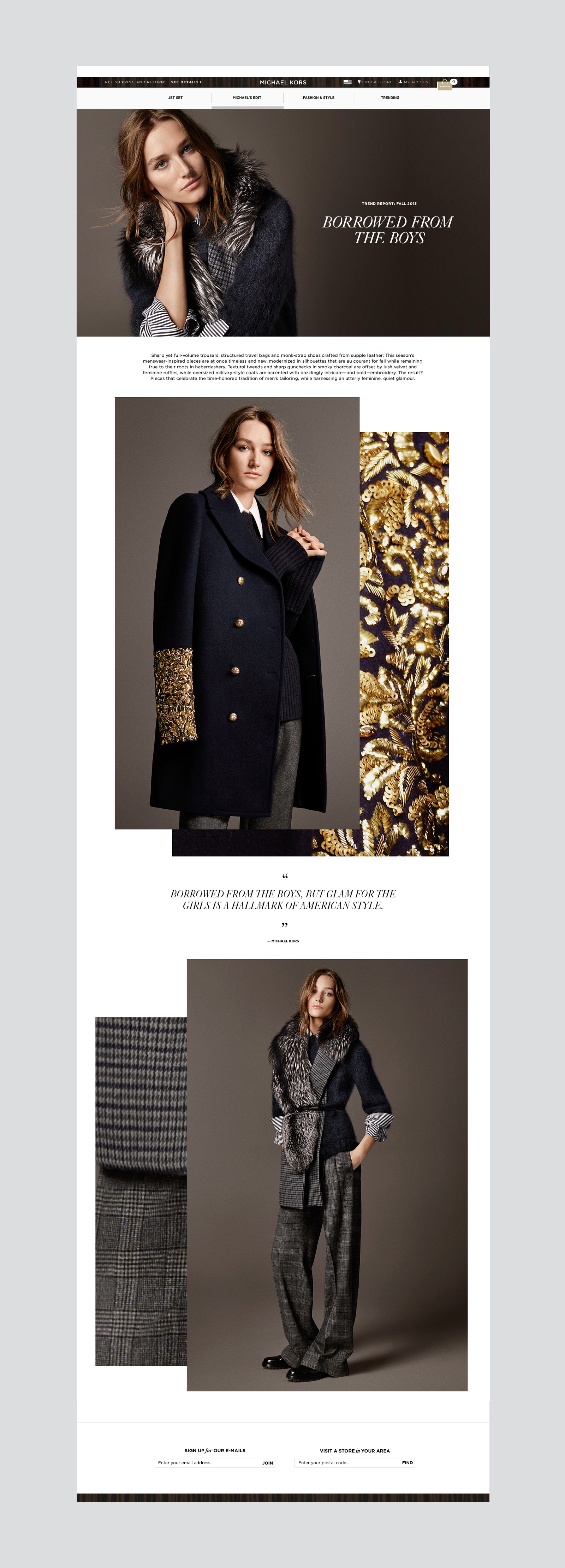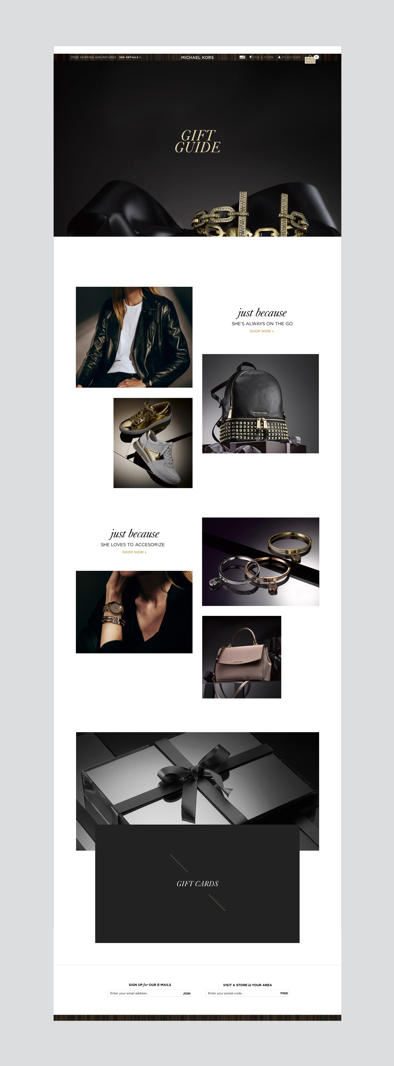 Michael Kors is a well known global luxury lifestyle brand led by a renowned, award-winning designer. MK features distinctive designs, materials and craftsmanship with a jet-set aesthetic that combines stylish elegance and a sporty attitude. This mini-site has been created for the holiday season showcasing the perfect gift ideas for her.